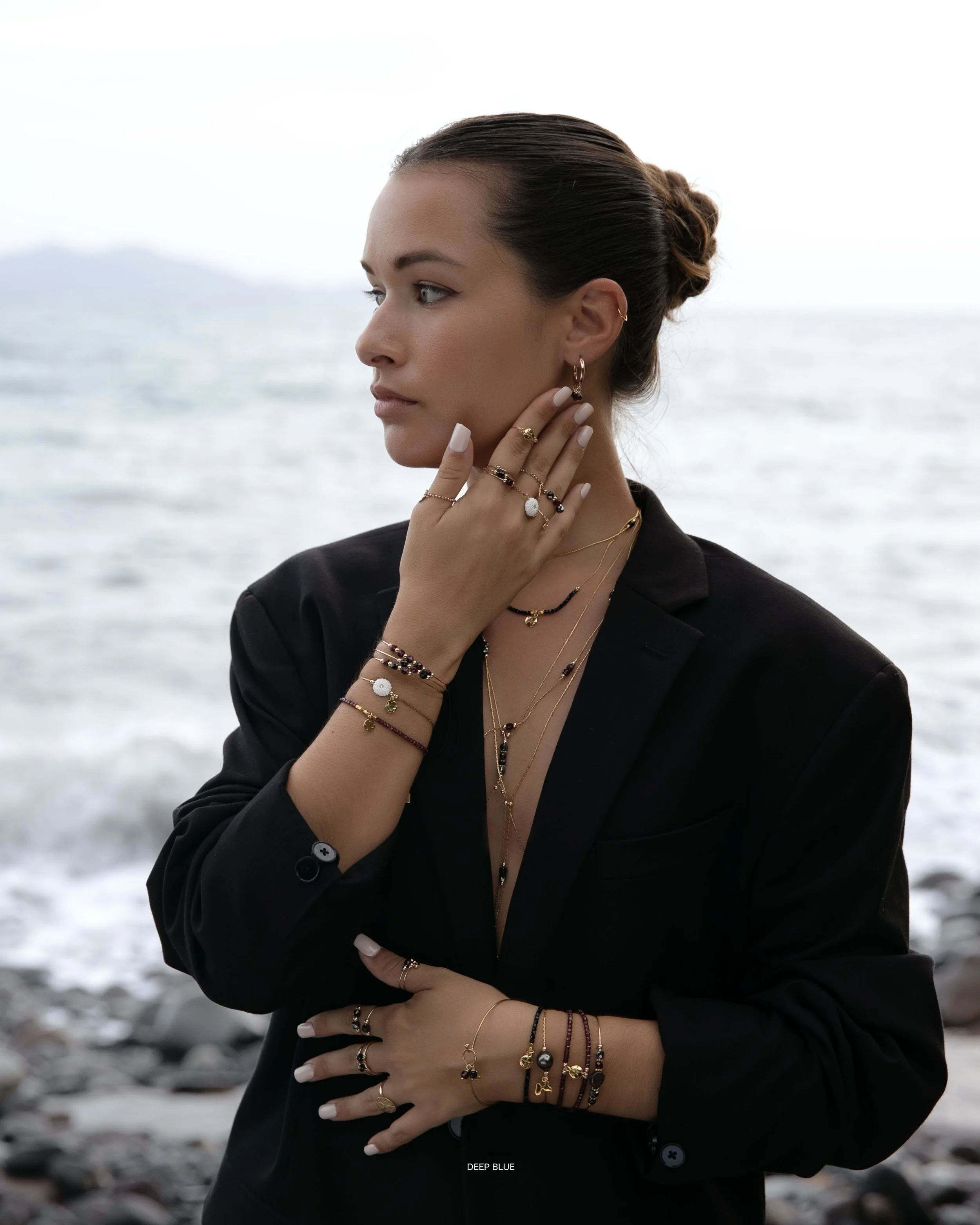 Découvrez des créations uniques, spécialement conçues pour les fêtes. Des pièces raffinées dans des nuances de noir, d'or et nos pierres Grenats.